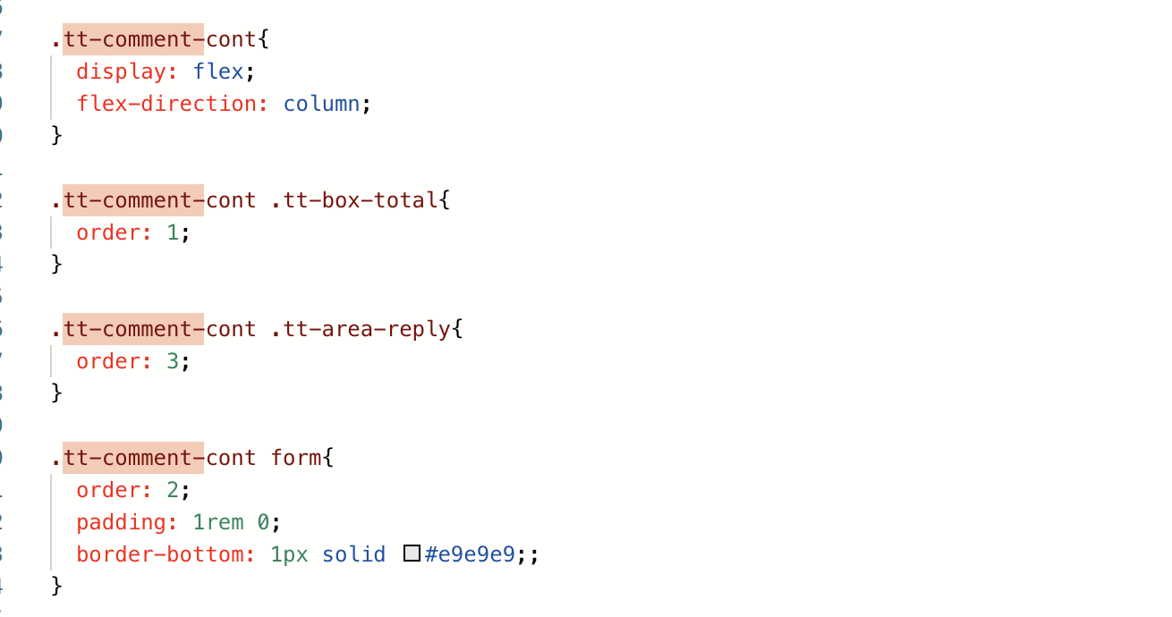 키보드에서 'Ctrl + F' (맥은 Command + F)를 눌러서 검색창을 띄우세요. 그리고 검색창에 'tt-comment-cont'라고 입력합니다. 아마 대충 3600번째 줄 근처로 이동하게 될 거예요. 그 위치에 아래 코드를 복사해서 넣어주세요!